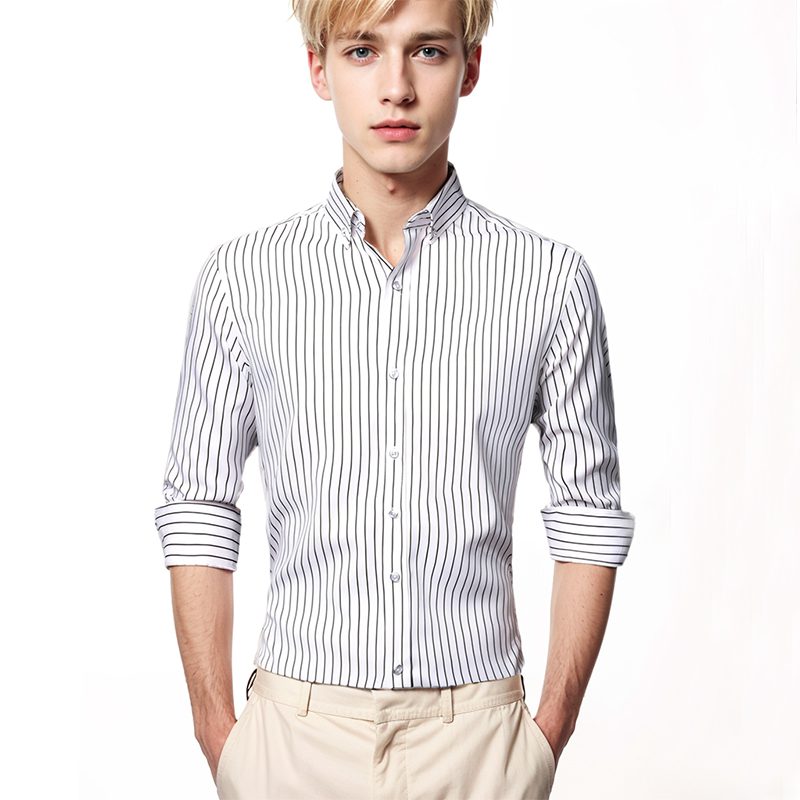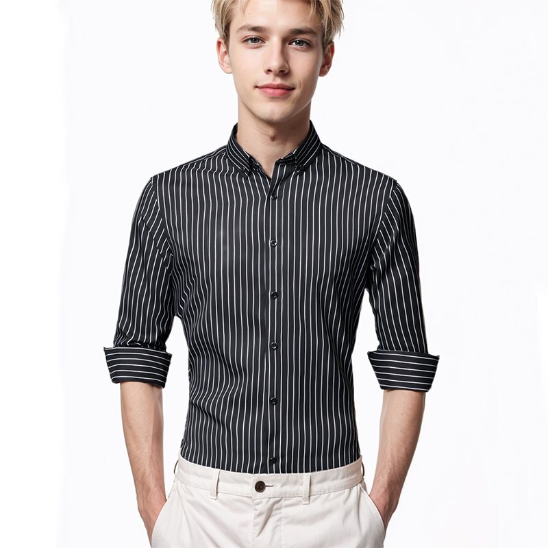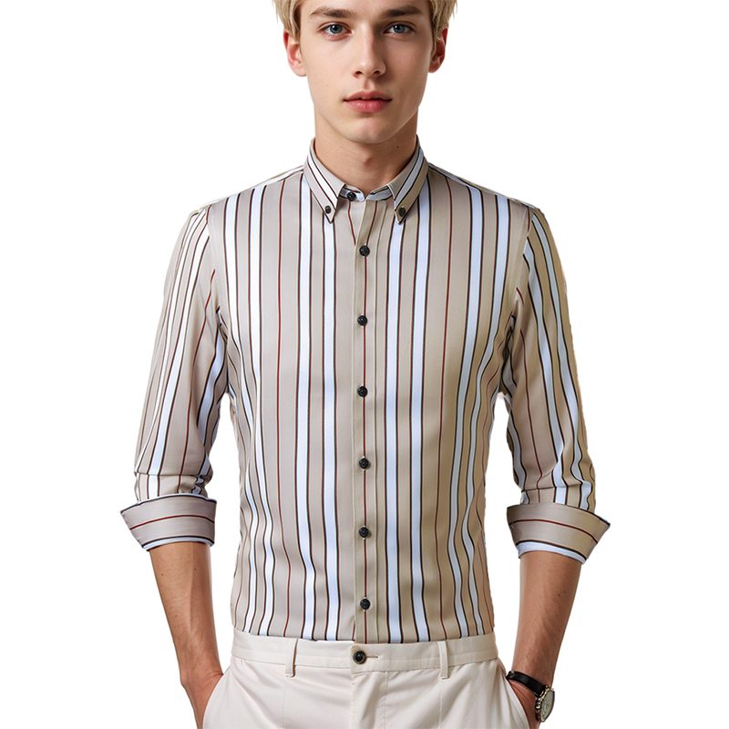 Camicia da uomo elasticizzata Camicia a righe casual antipiega