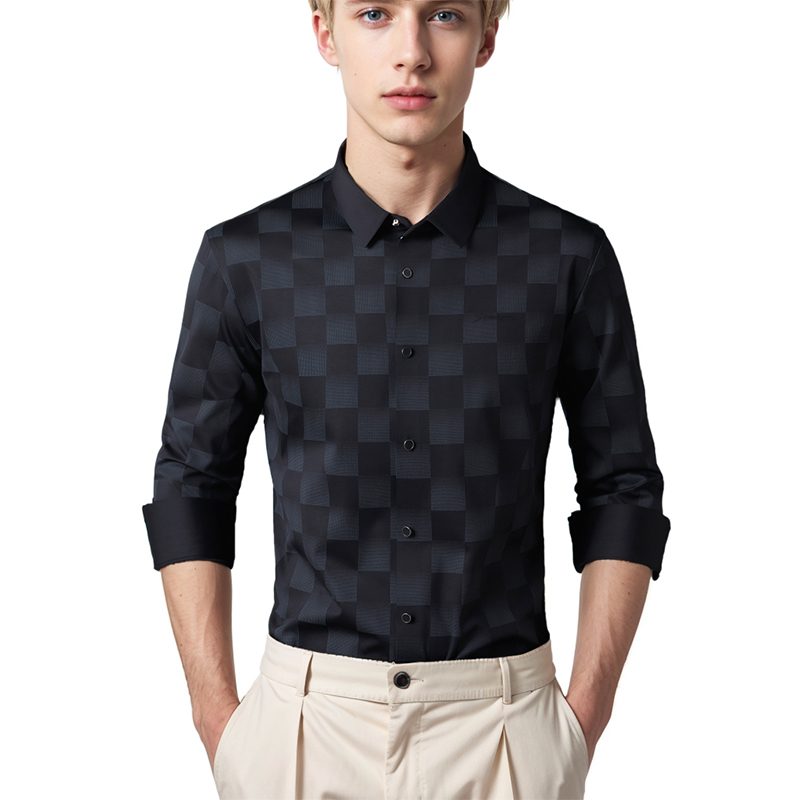 Naadloos, hoogelastisch casual overhemd met opdruk voor heren